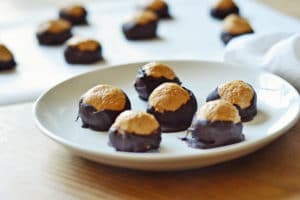First of all you may be asking, “What is a Buckeye?” and I’m here to tell you that they are dangerously addictive little bites of creamy sweet peanut butter dipped in dark chocolate!