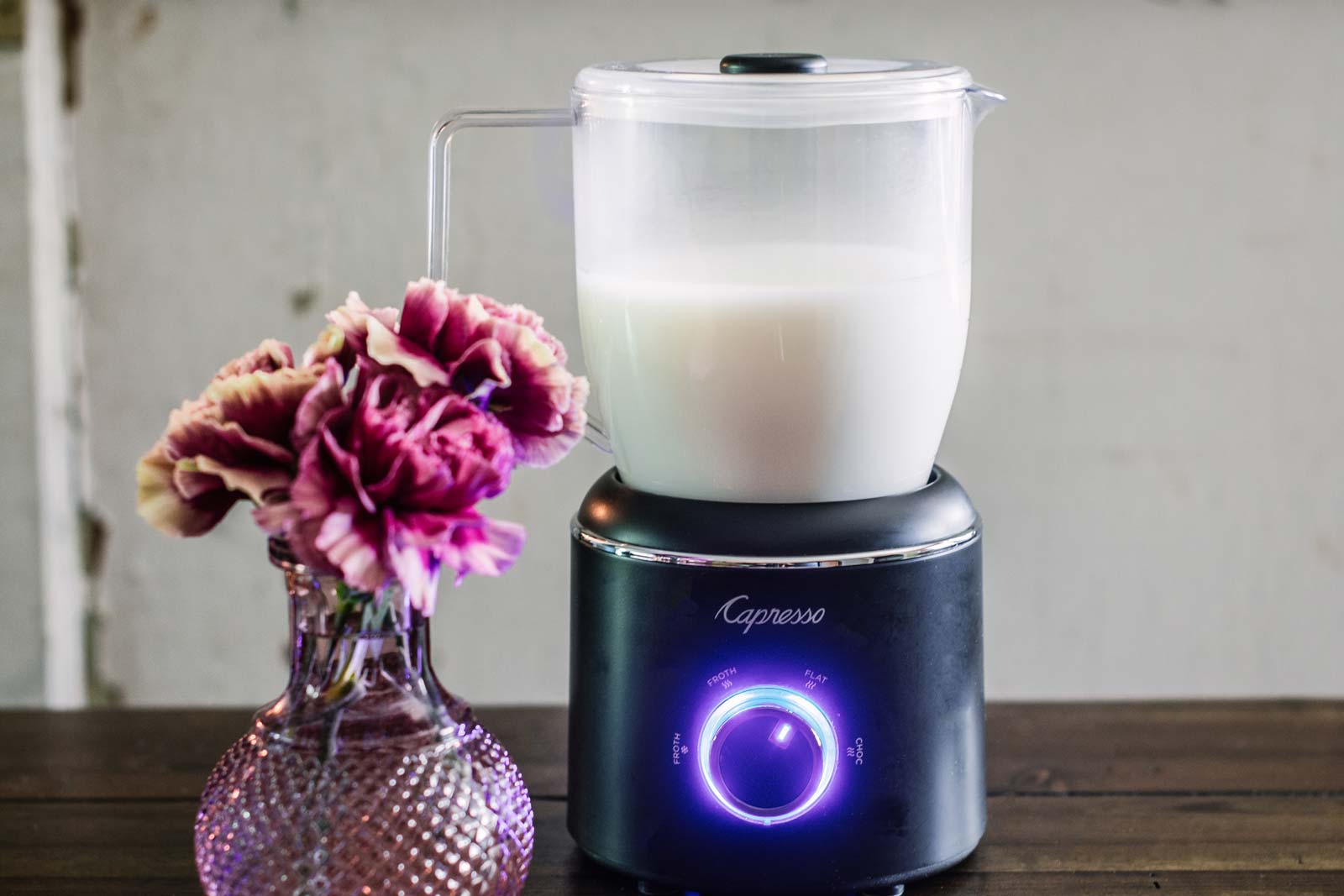 All you really need is dried hibiscus flowers, sweetener if you’d like, and freshly boiled water, I love using my Capresso pour over electric kettle for this because I can adjust the temperature exactly the way I like it. Sometimes I make it neat and tidy without the extra froufrou of making a latte. But when I do make a latte, my beloved and probably overworked Capresso milk frother is put to work to create the luxurious steamy, frothy milk ever!