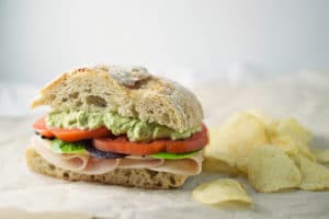 A tasty way to enjoy lunch, pack a Roast Turkey with Garlic Avocado Mayo Sandwich!
